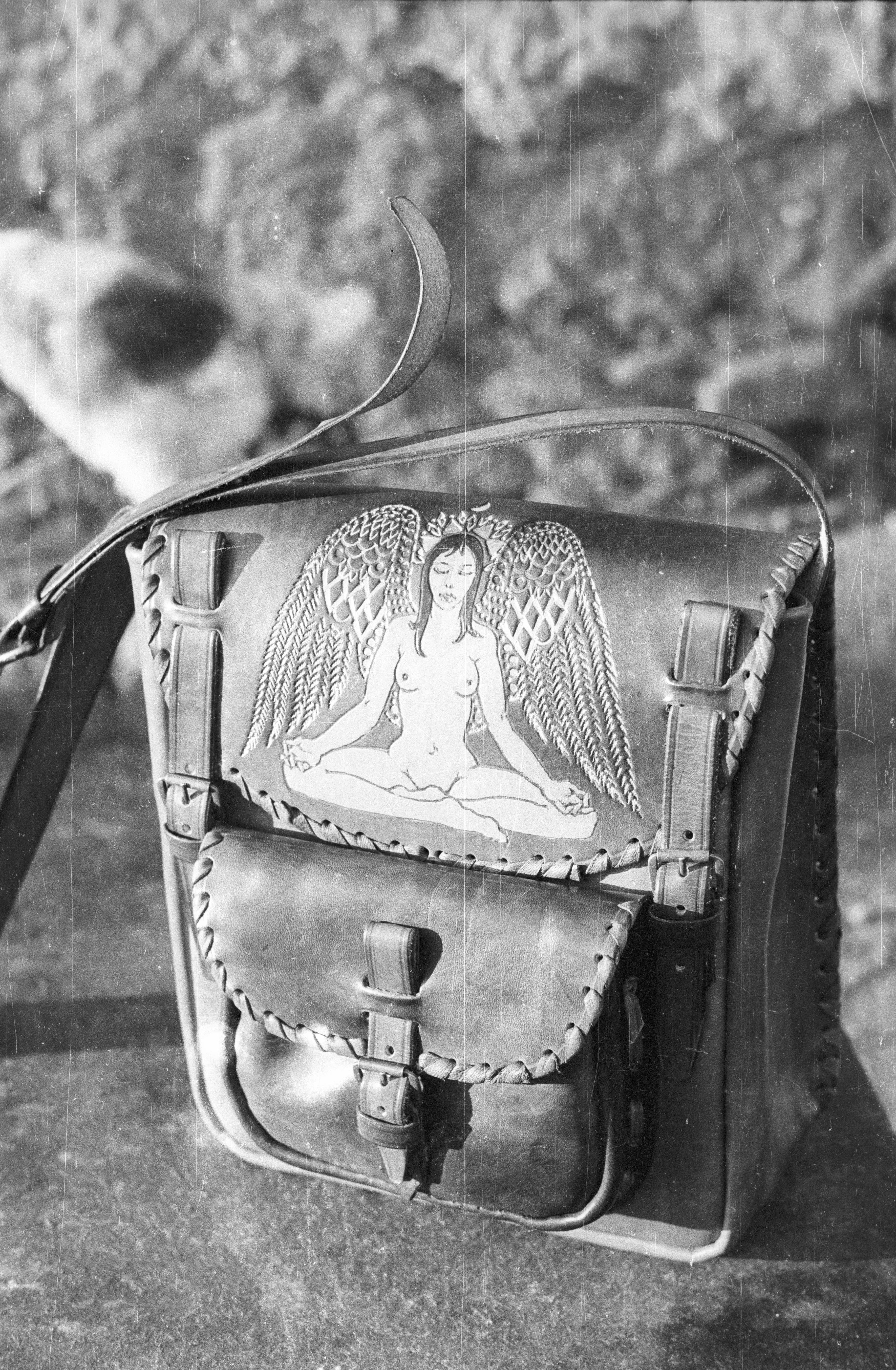 Previous Image Next Image Crafting leather (1978) Bag with punched and painted decoration Bag with punched and painted decoration